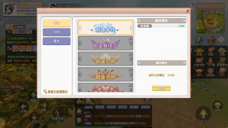 《飞飞重逢》的称号系统有着丰富的获取方式,其中成就系统占据了关键地位。游戏设定了大量成就,覆盖了玩家的各类行为,从基本的角色成长,如提升等级和技能,到探索任务,甚至在 PVP 战斗中取得优异成绩,都能为玩家带来独特的称号。比如,当玩家成功达到30级时,会解锁“初出茅庐勇者”称号,这既是对新手阶段努力的认可,也标志着玩家开启了全新的冒险。而对于喜欢探索的玩家来说,完成全图传送点解锁任务后,便能获得“世界探索大师”称号,彰显其对游戏世界的深刻理解。战斗成就方面,如若玩家所在队伍连续三次成功登顶天空王座,队长将获得“天空霸主之师”称号,象征着团队无可匹敌的实力。 每个称号的外观都经过精心设计,与其获取条件紧密相关。例如,“初出茅庐勇者”称号采用简单且充满活力的设计,象征着玩家初入游戏时的朝气;“世界探索大师”称号则设计了一张闪耀星辰的地图,表示玩家对世界的探索与发现;而“天空霸主之师”则是一顶镶嵌蓝宝石的金色王冠,彰显王者气概,体现了玩家在天空王座中的霸主地位。